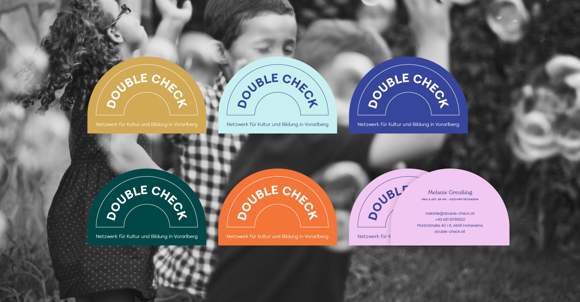 Double Check fördert die Integration von Kunst und Kultur in Bildung, und das von Anfang an. Der Vorarlberger Verein leistet großartige Arbeit für Kindergärten, Schulen und Lehrbetriebe. Ziel des visuellen Erscheinungsbildes war es, kulturelle Vielfalt und den freudvollen Zugang zu Kunst und Kultur auf den ersten Blick zu kommunizieren.